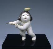 Melon-shaped covered container with tachibana and cherry blossom design