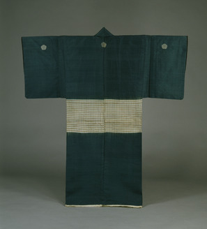 Noshime Garment (Warriors' Costume), Design of check pattern with bellflower crests on green