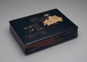 Black Lacquer Letter Box with Bellflower and Chrysanthemum Motifs in Makie