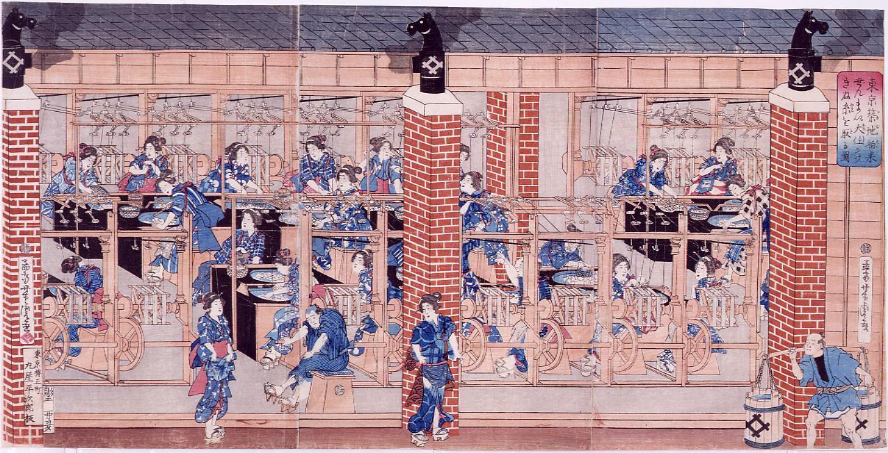 東京築地舶来ぜんまい大仕かけ きぬ糸を取る図