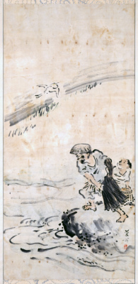 紙本淡彩 網打図