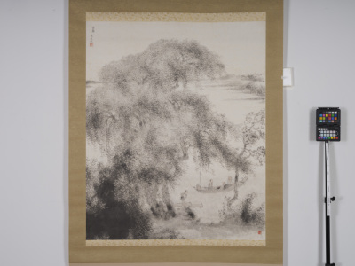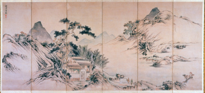 紙本淡彩山水図〈伝周文筆/〉