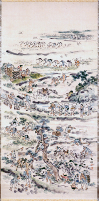 紙本淡彩 田植図・収穫図