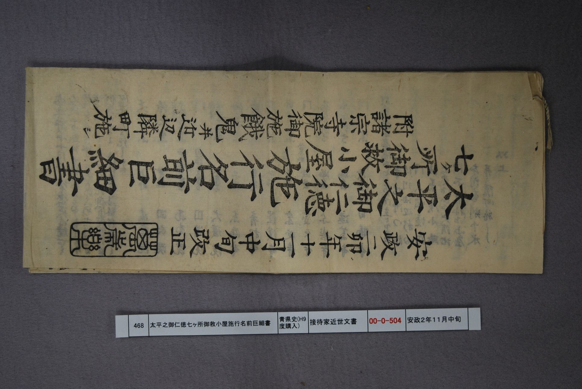 太平之御仁徳七ヶ所御救小屋施行名前巨細書