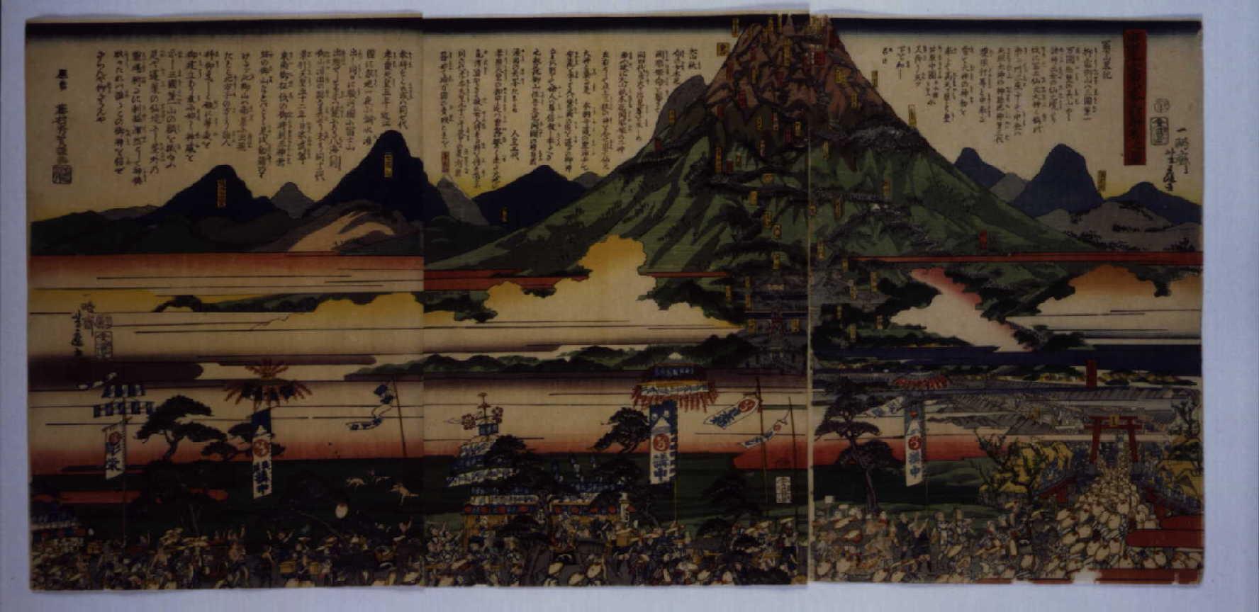 「三峰山御開扉参詣群集之図」 「三峰山御開扉参詣群集之図(三枚続)」