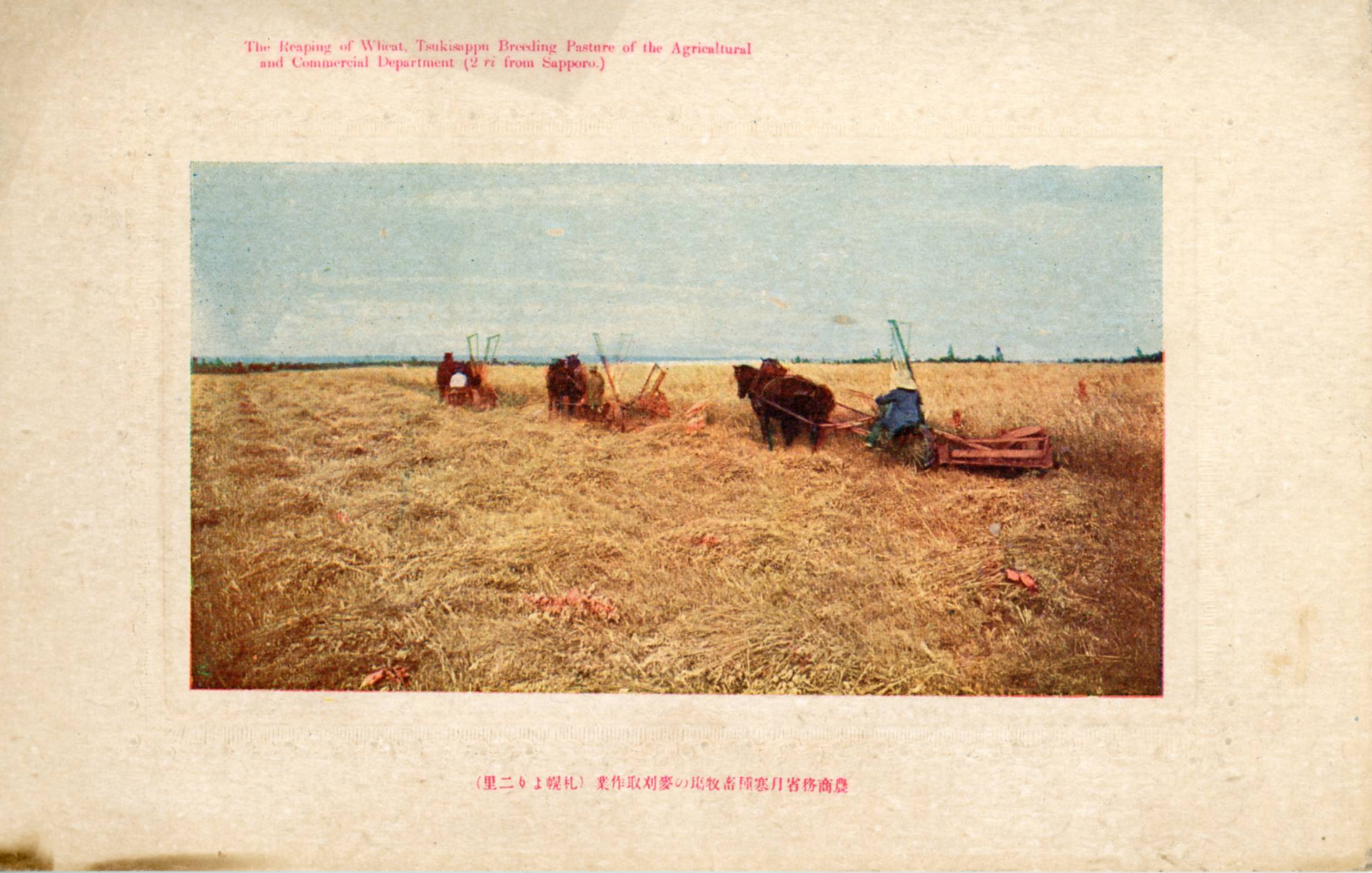 絵ハガキ(農商務省月寒種畜牧場の麦刈取作業)