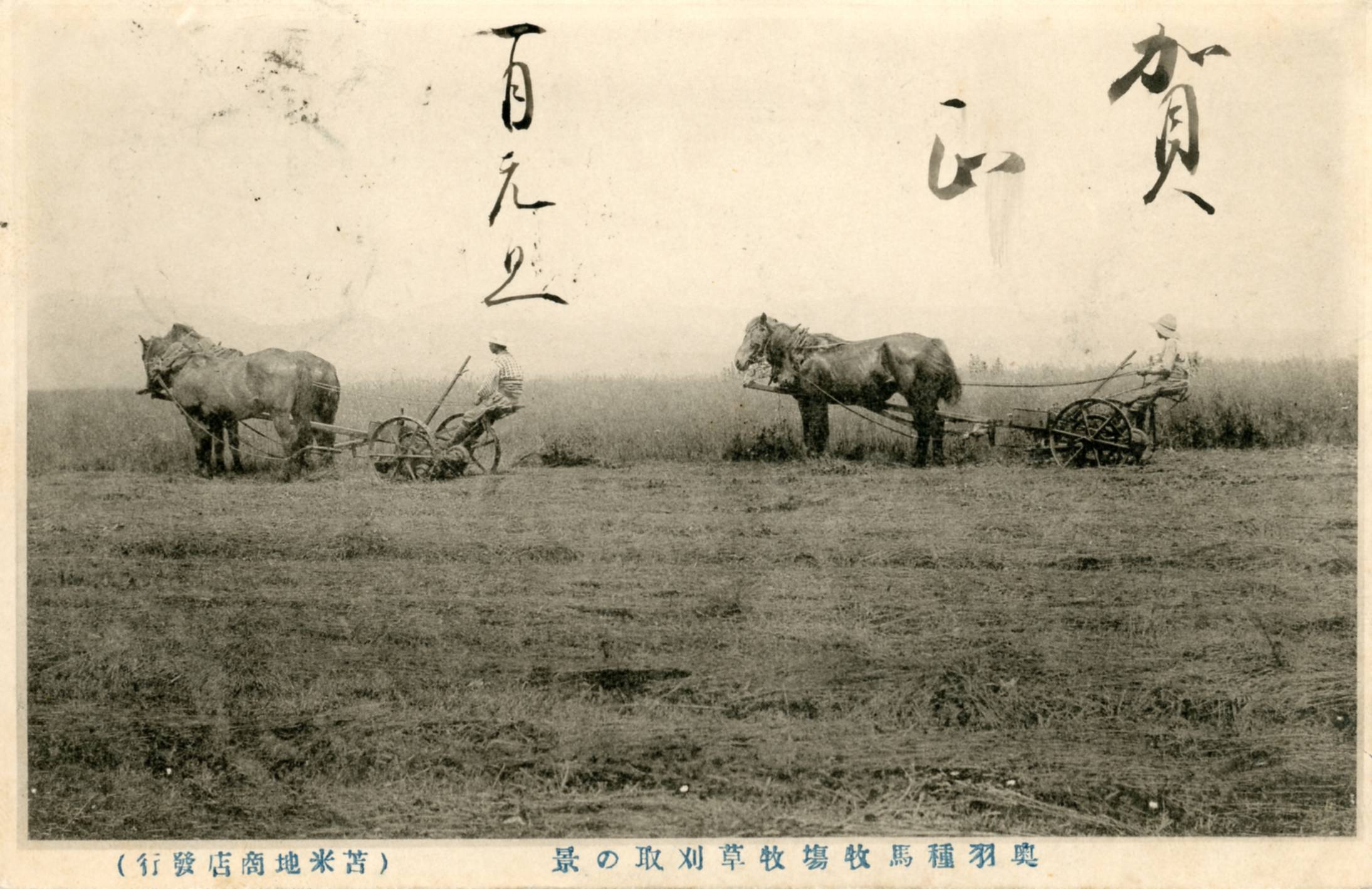 絵ハガキ(奥羽種馬牧場牧草刈取の景)