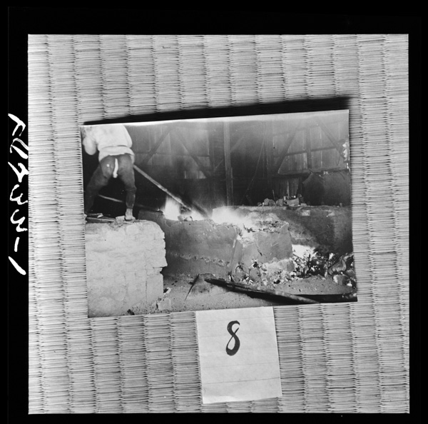 11~14 ろをこわしてけらをまるたでおもてにひきだし,すいしゃでつきくだいてこまかくする