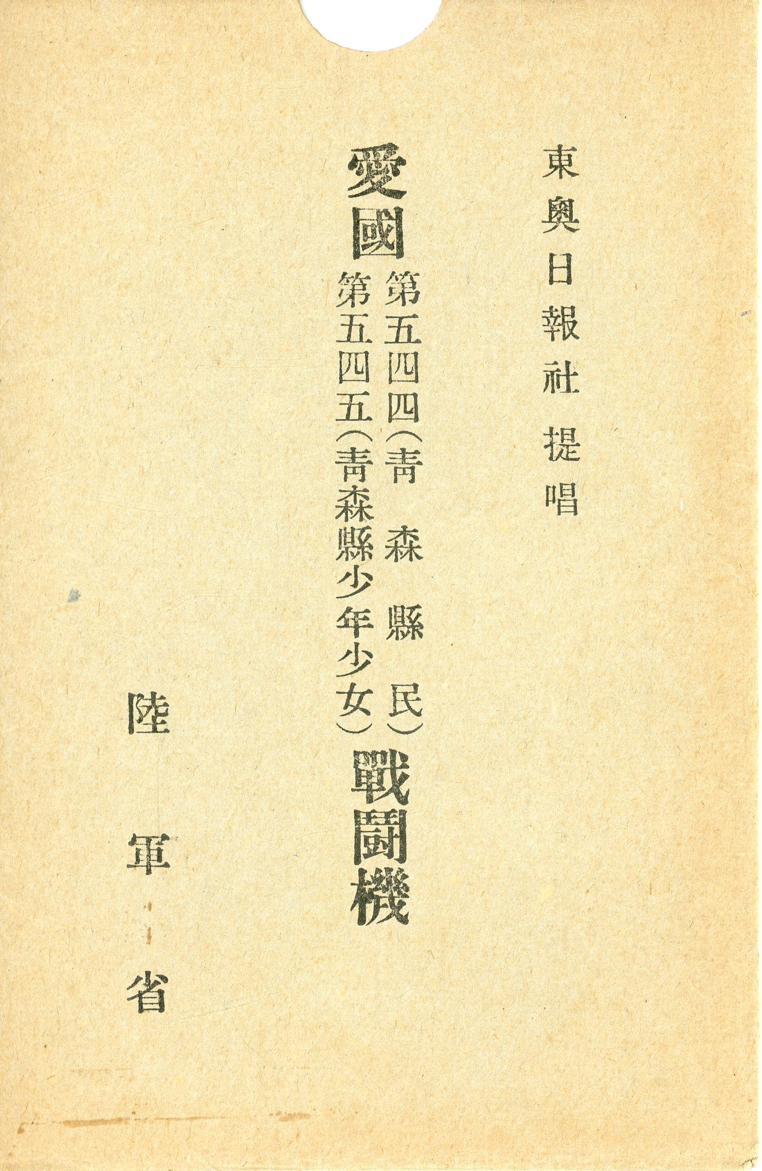 絵ハガキ(東奥日報社提唱 愛国第五四四(青森県民)・第五四五(青森県少年少女)戦闘機)