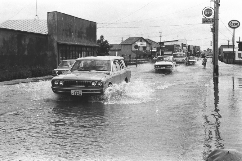 昭和47年7月豪雨で洪水状態の浪館通り