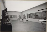 Zaal IX Japanse kunst, met onder meer beelden, vitrines met vaatwerk en links een twaalfbladig scherm