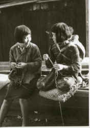 子守りをしながら友だちと編み物