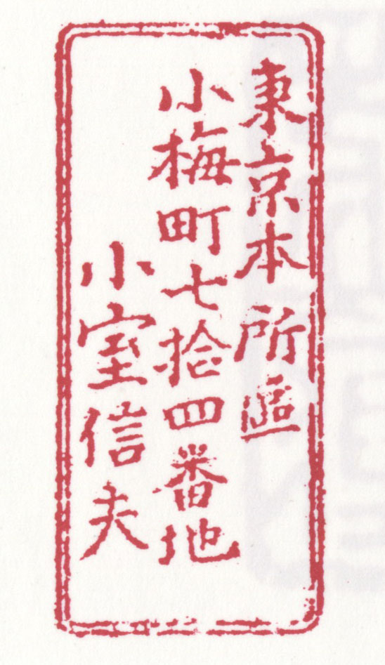 東京本所区小梅町七拾四番地小室信夫