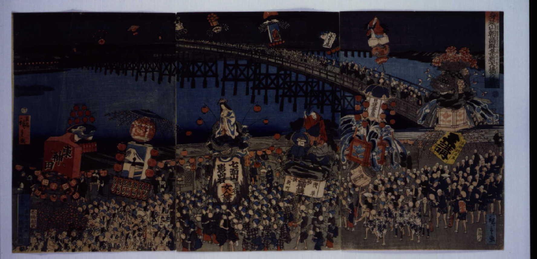 「身延山朝詣群集新大橋の景」