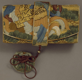 萌葱ビロード地羽衣文様繍箱迫(銀垂飾つき)
