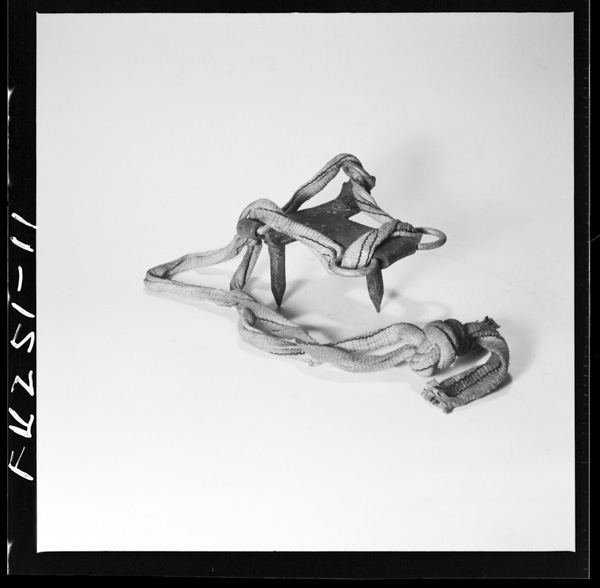 Een stalen pikhaak met een door katoenvezels omwonden handvat, dat bij elkaar gehouden wordt door ...