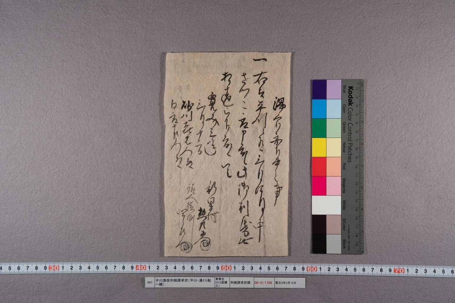 平川漁役判紙請求状(平川・湯くり船一艘)