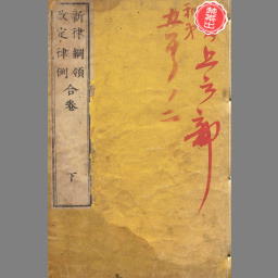 新律綱領 改定律例 合巻 下 巻三 人命律上 計一十條 巻四 人命律下 計一十六條 闘殴律 計一十四條 罵詈律 計五條 訴訟律 計八條 受臓律 計一十條 巻五 詐偽律 計九條 犯姦律 計五條 雑犯律 計一十條 捕亡律 計六條 断獄律 計一十一條