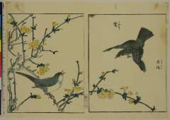 Two Sketches: Moon and Plum (right) and Cormorant Fisherman (left)