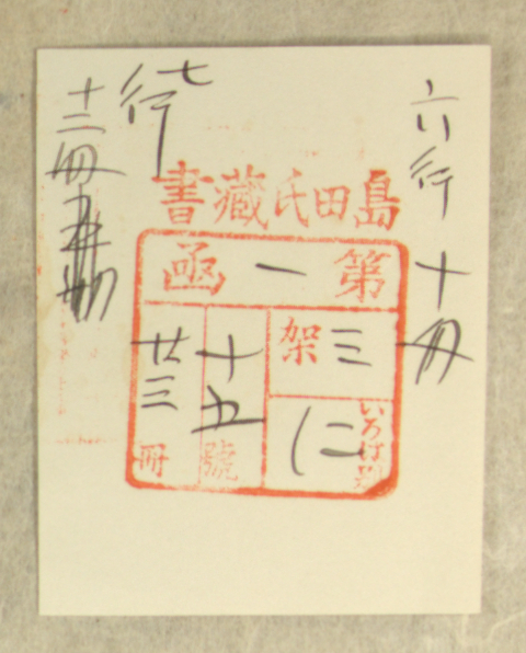 島田氏蔵書/第 函/ 架/いろは題 / 号/ 冊