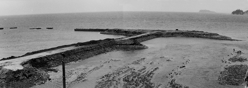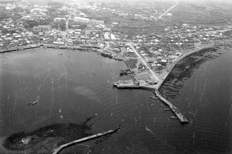 鳥羽の漁村の浜辺で
