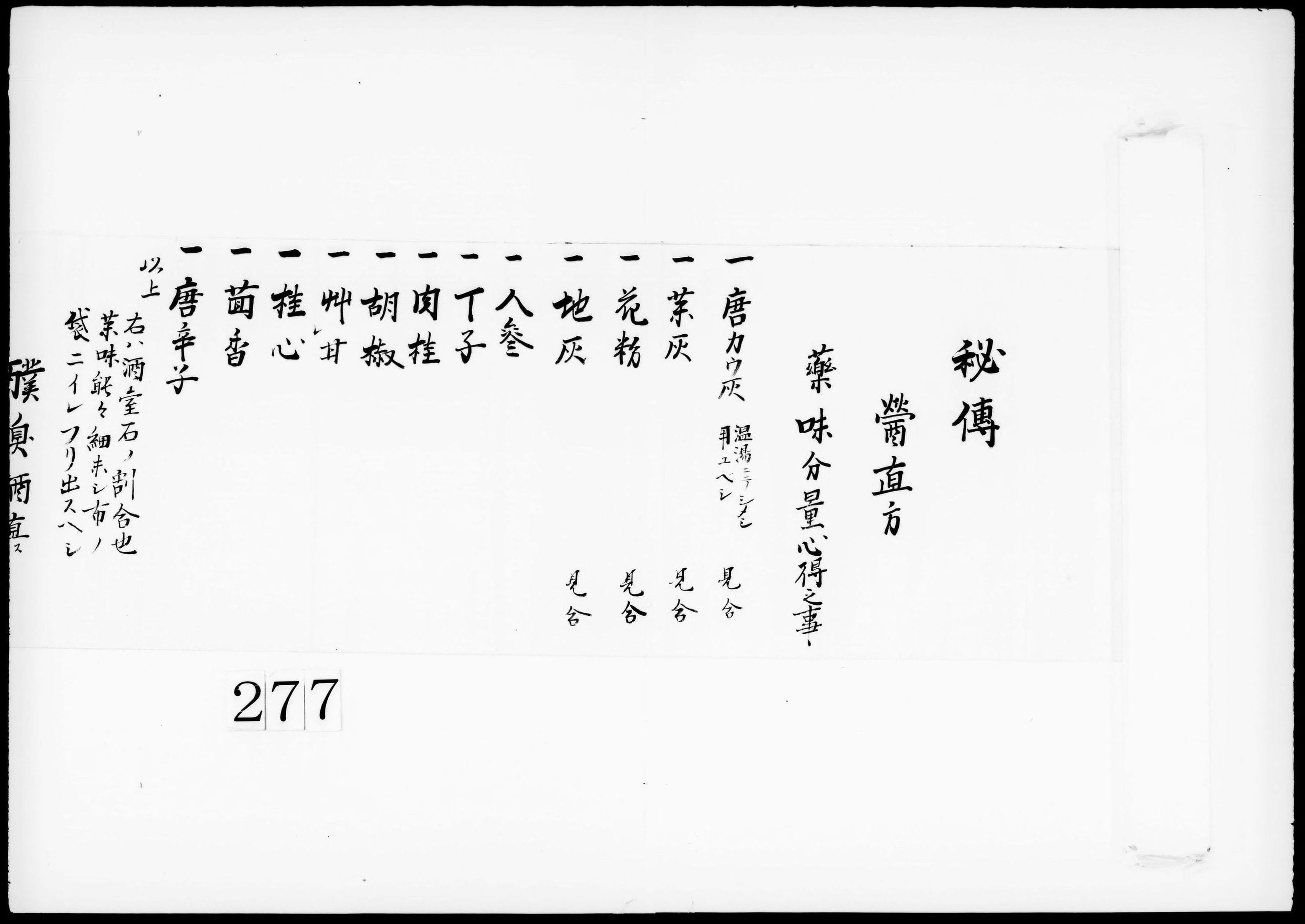 秘伝(薬味分量心得の事)