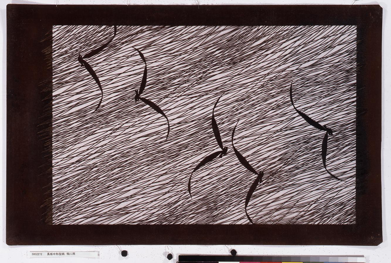 長板中形型紙 鴨に雨