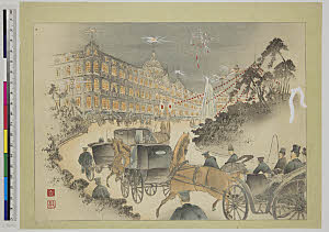 Postcard depicting a street in Izumo, Japan