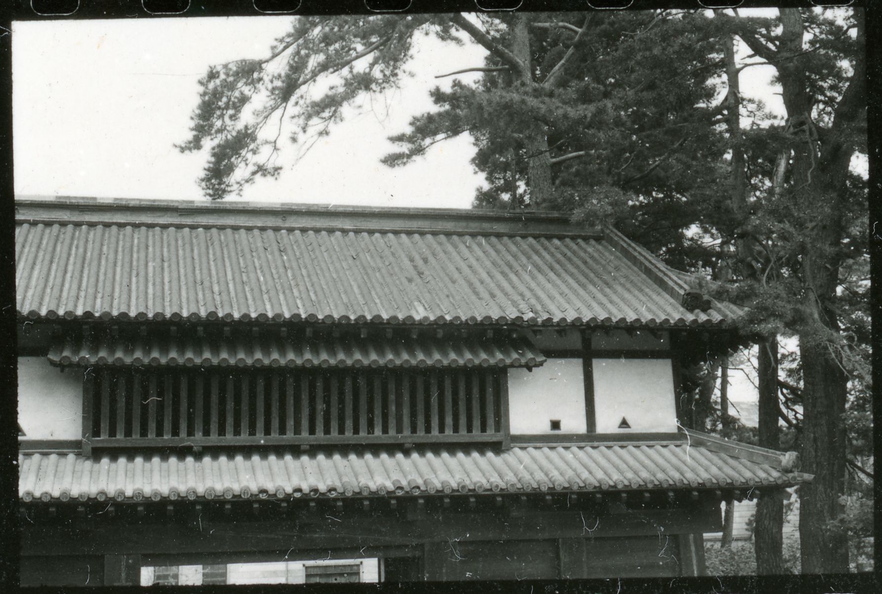Houten boerderij met rieten dak in Miboro, Japan, 1941