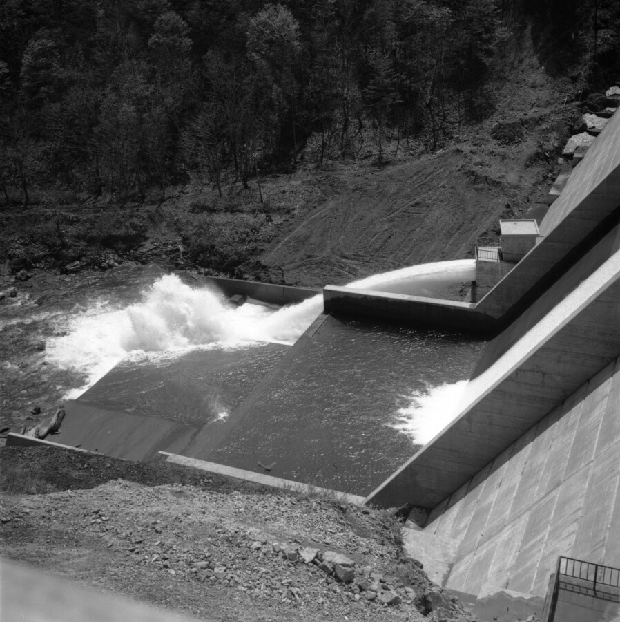 天間ダムの放水