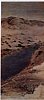 "Fusiyama". Zittende vrouw aan de kant van de weg, op de rug gezien