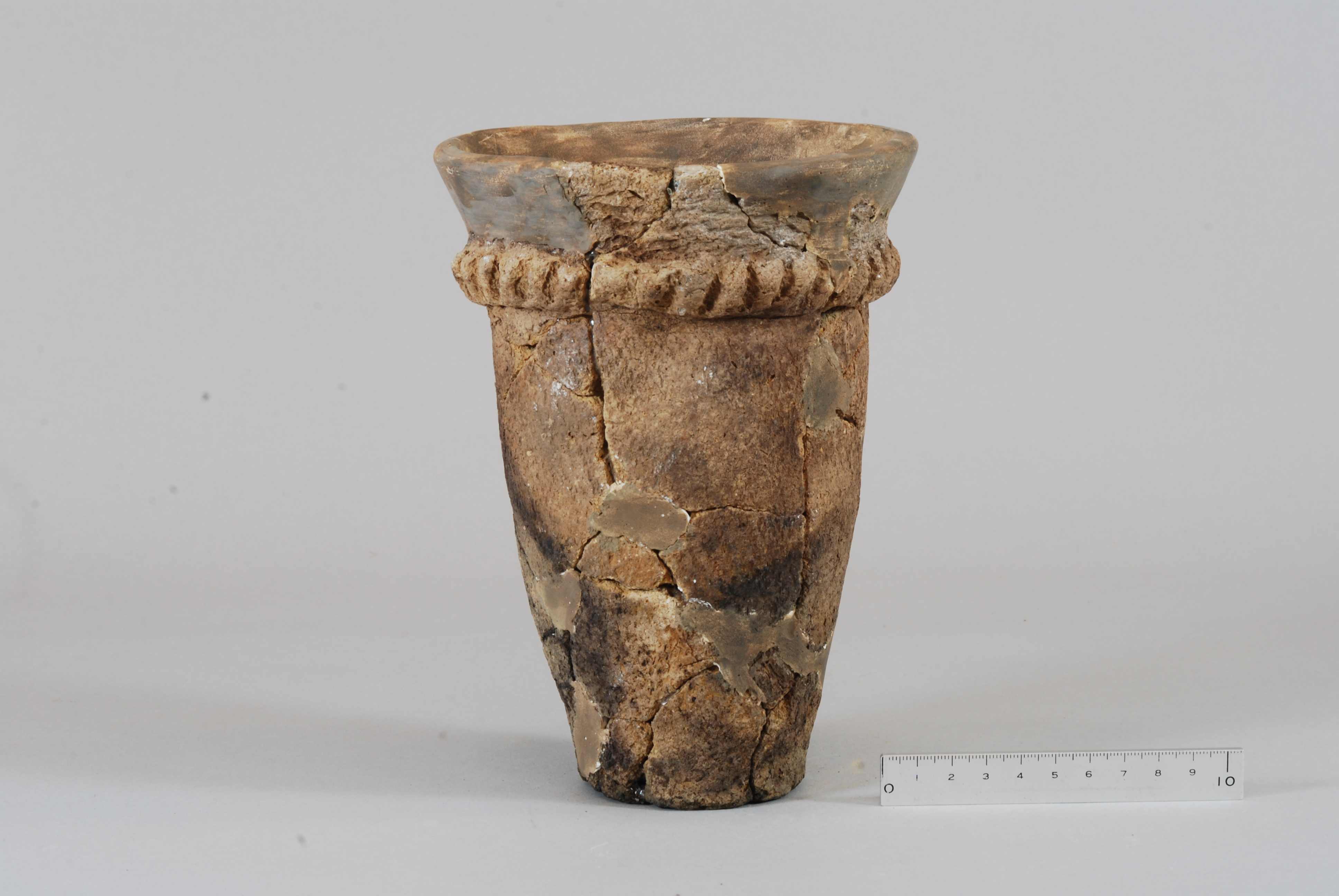 Vaasje gemaakt van karakane (brons met een hoog loodgehalte), naar boven toe iets wijder uitlopend...