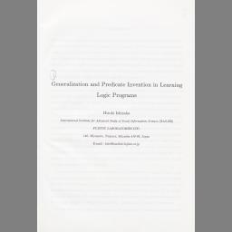 Generalization and predicate invention in learning logic programs