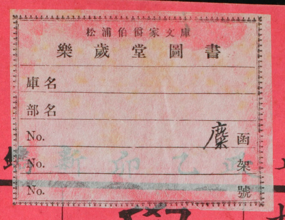 松浦伯爵家文庫楽歳堂図書庫名 部名 No. 函 No. 架 No. 号