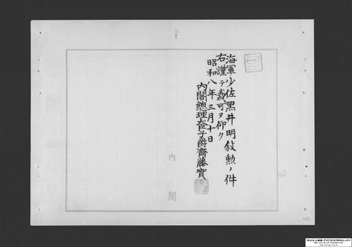 海軍少佐黒井明叙勲ノ件