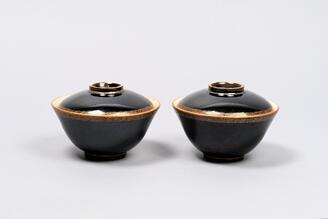 黒釉金彩縁取蓋茶碗