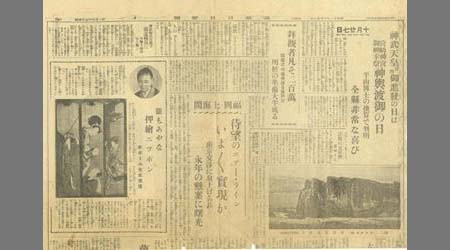 新聞切抜〔福岡日日新聞) 神武天皇日向進發の日は宮崎神宮御神幸載神輿渡御の日 1枚