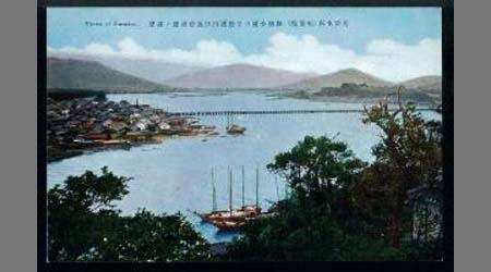 唐津名所(松浦瀉)舞鶴公園ヨリ松浦川口及松浦橋ノ遠望