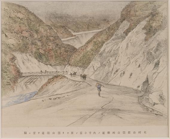 北村山郡関山村新道ノ内字小屋ノ原ヨリ関山隧道ヲ望ム図