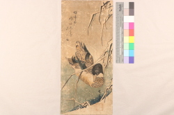 「鴨啼や風吹きしはむ水の面」 (雪中蘆に鴨)