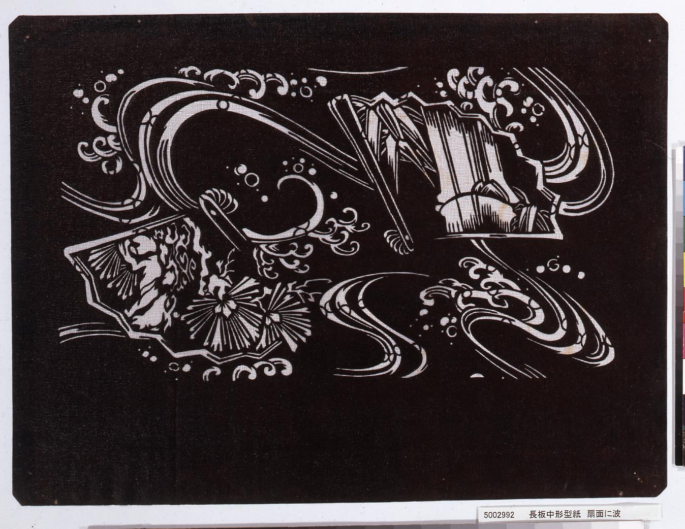 長板中形型紙 扇面に波