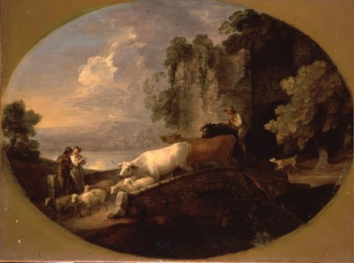 牛追いのいる風景