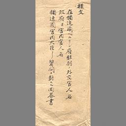 ミニストル香港より帰府に付道中筋取扱方申送る