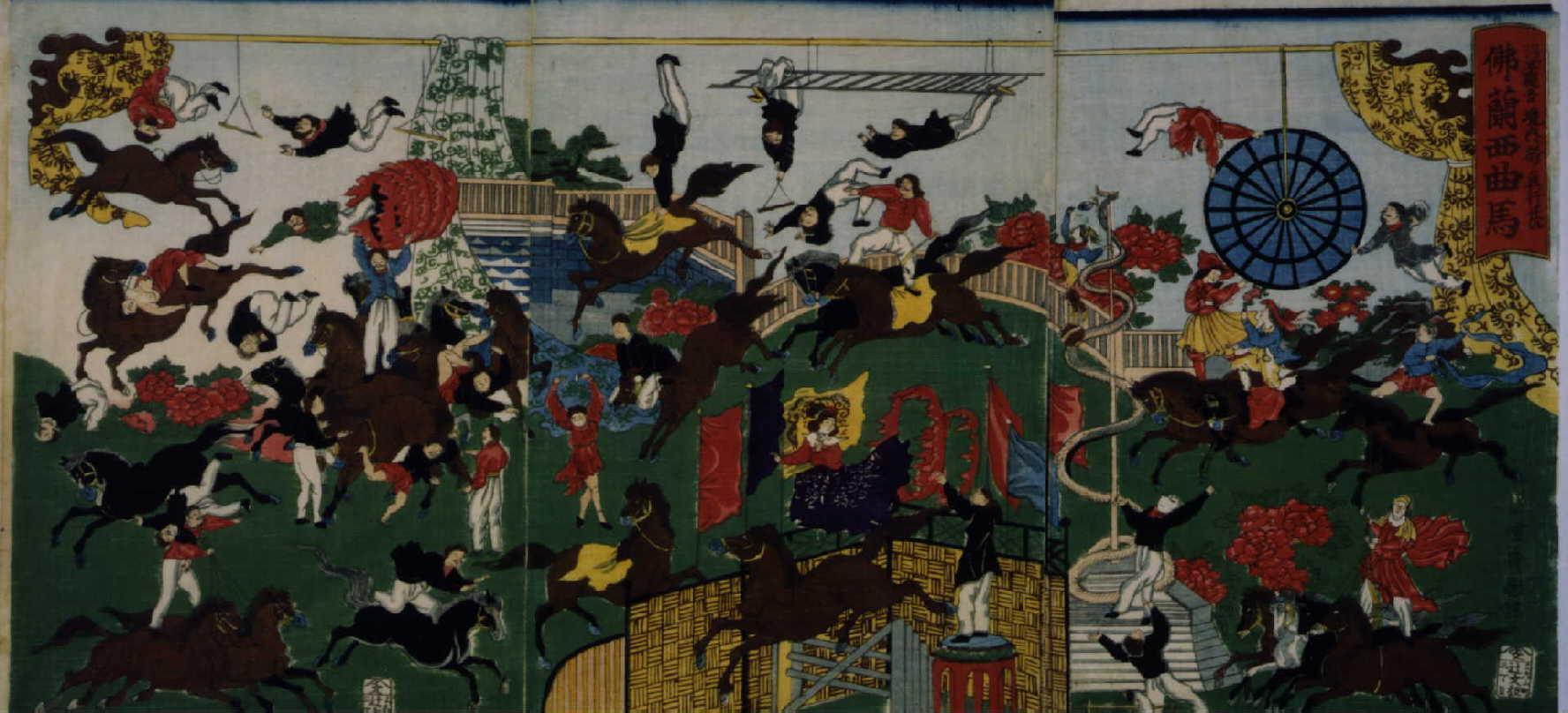 錦絵断片 浅草観音境内ニ於イテ興行仕候 仏蘭西曲馬