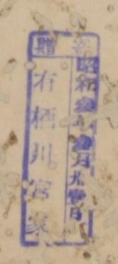 寄贈/昭和参年三月卅壱日 有栖川宮家