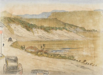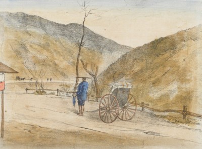 東北新道石版画 栃木県塩谷郡上塩原村新道の内字馬乗沢の図