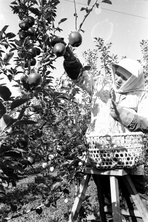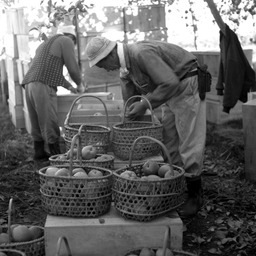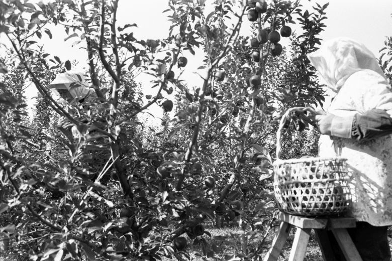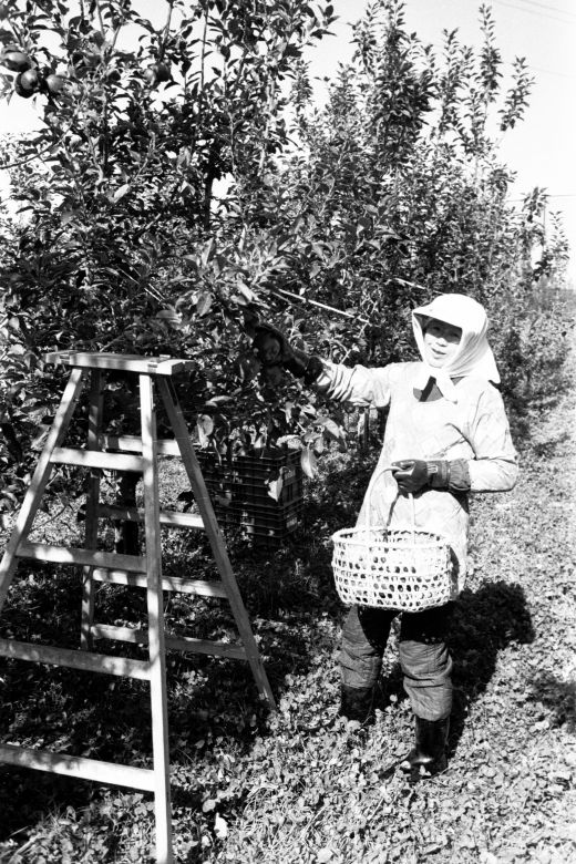 りんご試験場でのりんごの収穫
