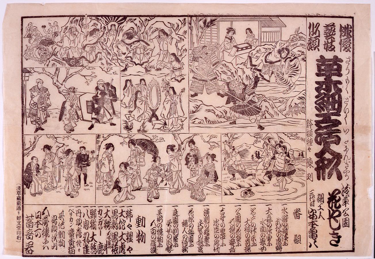 「大仕掛菊細工大人形」「人形師山本福松」 「吉野山雪中之図」「景清牢屋之図」「世界第一之美人」「大月密会之図」