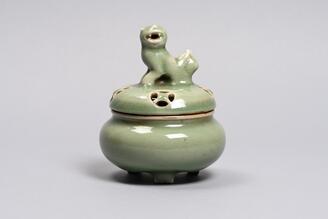 青磁獅子蓋香炉(七官青磁)