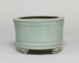 青磁格子文三足香炉